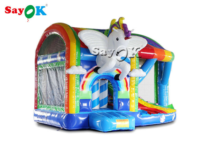 Arco iris gigante durable Unicorn Bouncy Castle inflable del Pvc del patio al aire libre 4.7x5.9x3.2mH del niño